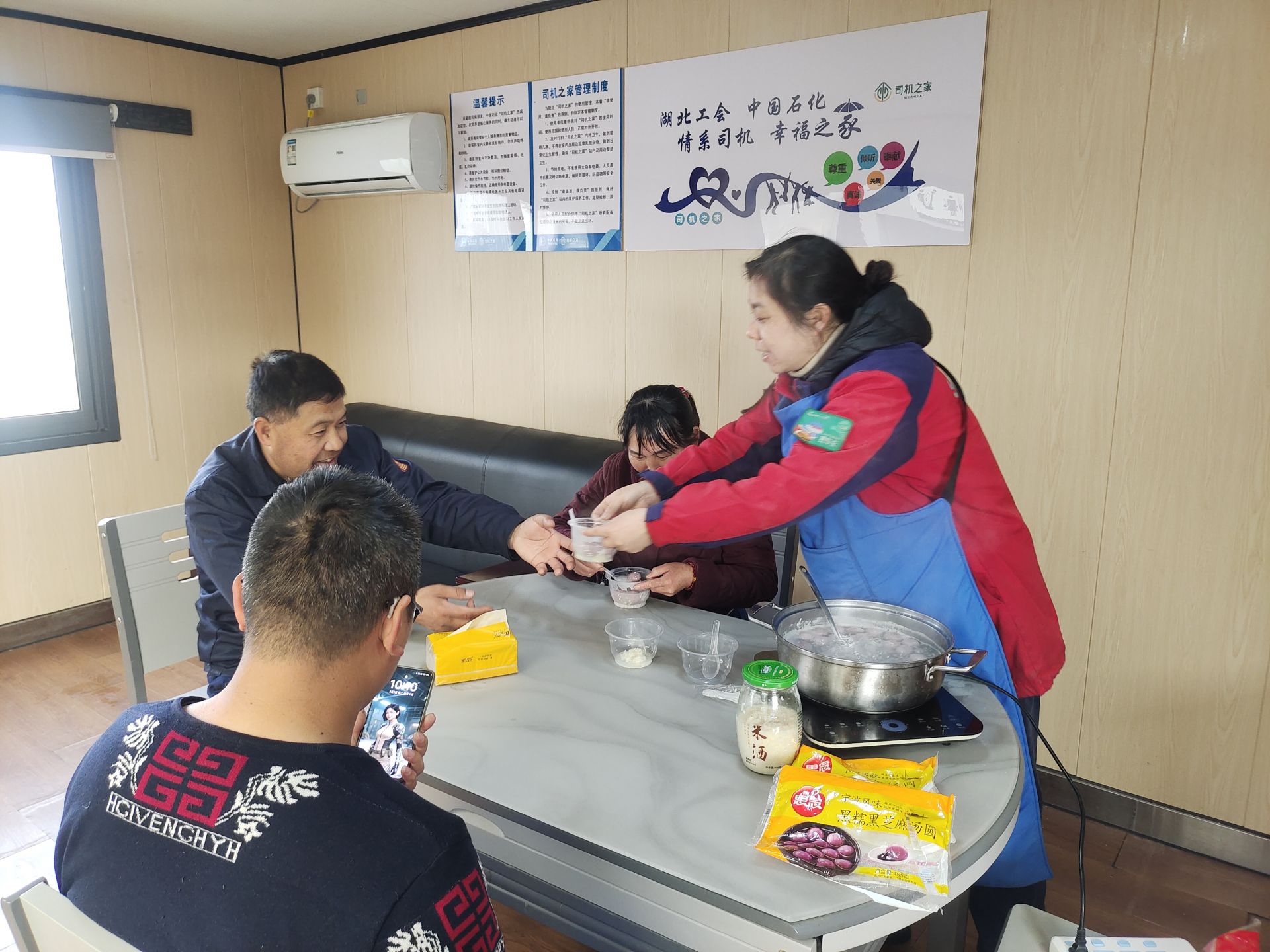 “以前過節(jié)都是自己帶干糧,今年能在中石化吃上熱乎的湯圓,心里真暖和?!杯h(huán)衛(wèi)工人張師傅吃著湯圓,臉上洋溢著笑容。員工們紛紛表示,希望小小的“愛心驛站”,能成為戶外勞動者隨時可以??康摹凹摇?。